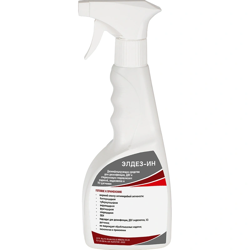 Дезинфицирующее средство «Элдез-ИН» в форме готового раствора 500 мл — это профессиональный препарат на основе глутарового альдегида. Обеспечивает надежную обработку эндоскопов, УЗИ-датчиков и термочувствительных инструментов.